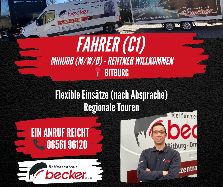 Wir suchen Unterstützung auf Minijob-Basis für Auslieferungen rund um Bitburg.
