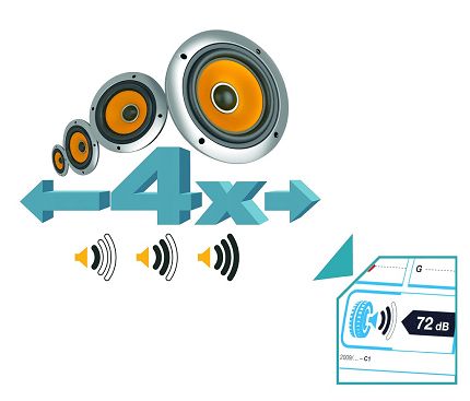 Die Höhe des externen Rollgeräuschs eines Reifens wird auf der Kennzeichnung der Europäischen Kommission in Dezibel in Kombination mit ein, zwei oder drei Schallwellen ausgedrückt. Eine Welle kennzeichnet den niedrigsten Geräuschpegel. Dies bedeutet, dass die Geräuschemission des Reifens mindestens 3 dB unter der zukünftigen gesetzlichen Grenze liegt.