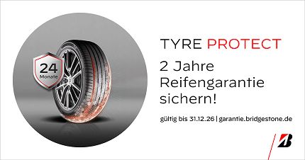 Mit Tyre Protect bietet Bridgestone eine kostenlose Reifengarantie für 24 Monate, die Sie zuverlässig vor unerwarteten Reifenschäden schützt.